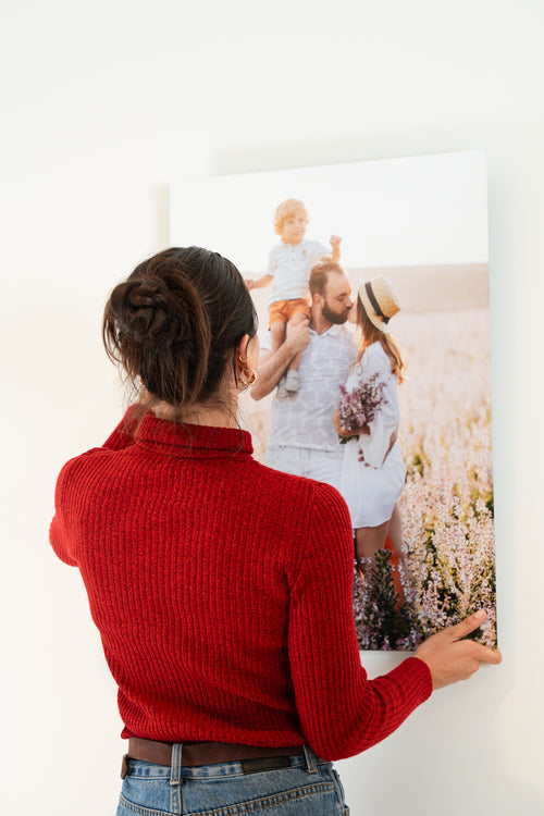 Our HD Metal Prints come with an easy-to-use magnetic hanging system—no drilling required! Simply stick the magnetic mount to your wall, and your print effortlessly snaps into place. It’s strong, secure, and repositionable.